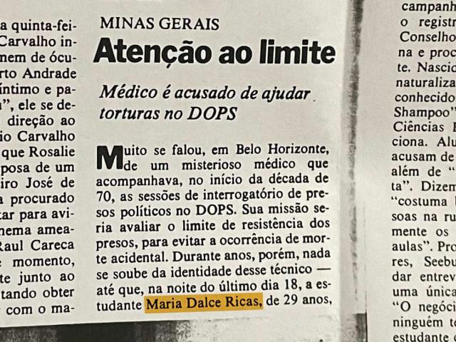 Maria Dalce Ricas's article in the 'Veja' magazine (1979)
