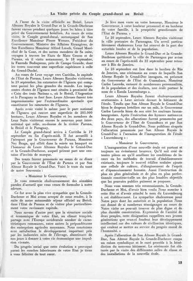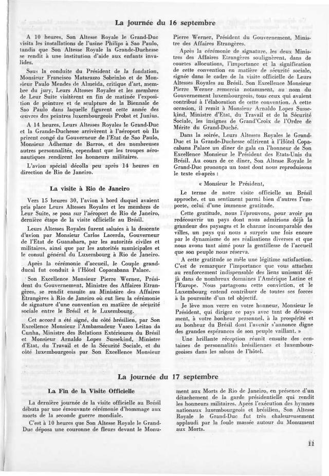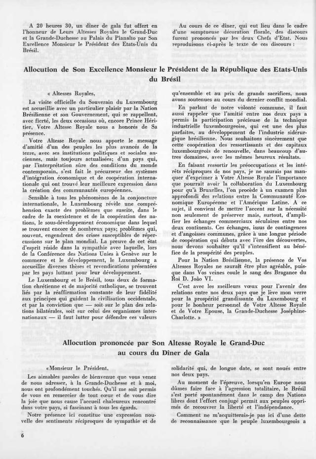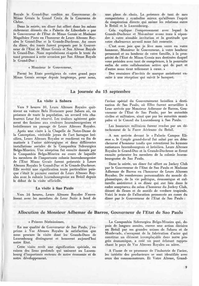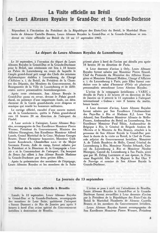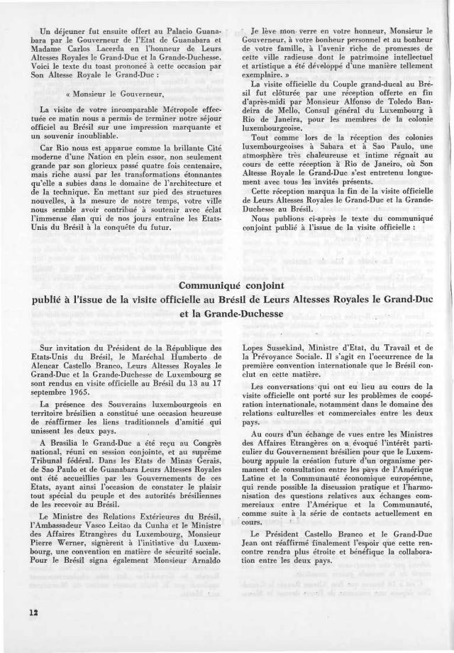 Source: "La visite officielle au Brésil de Leurs Altesses Royales le Grand-Duc et la Grande-Duchesse", in: Grand-Duché de Luxembourg, Ministère d'État, Service Information et Presse, Bulletin de Documentation. 21e Année, Nr. 12, 30 septembre 1965, pp. 3-13.
