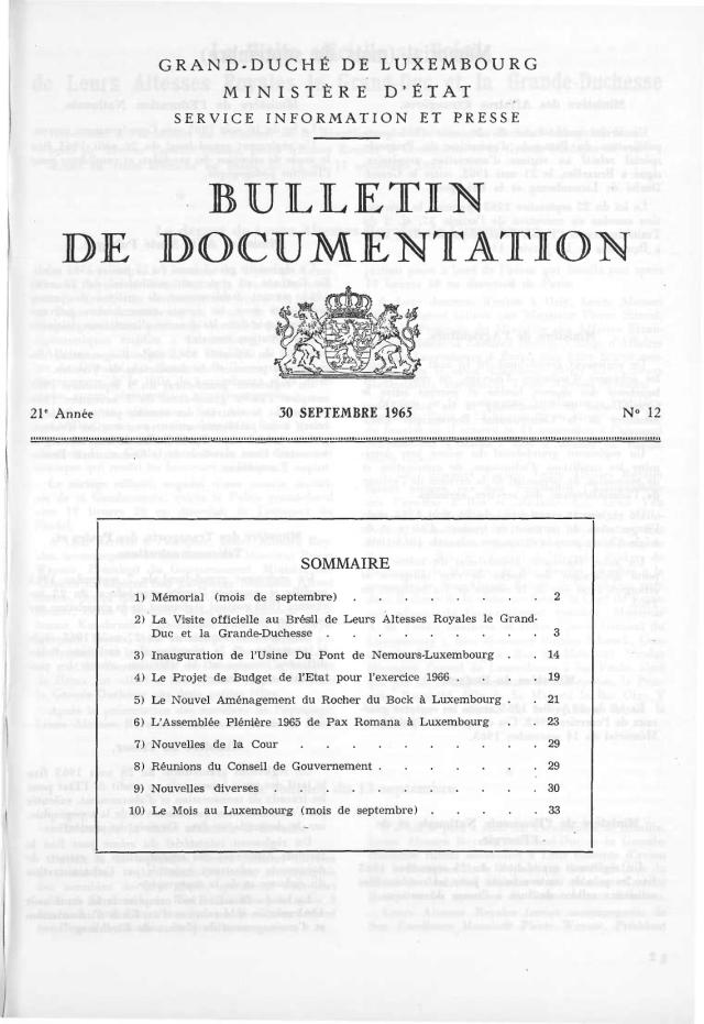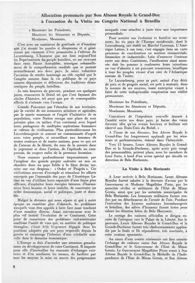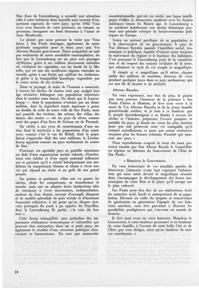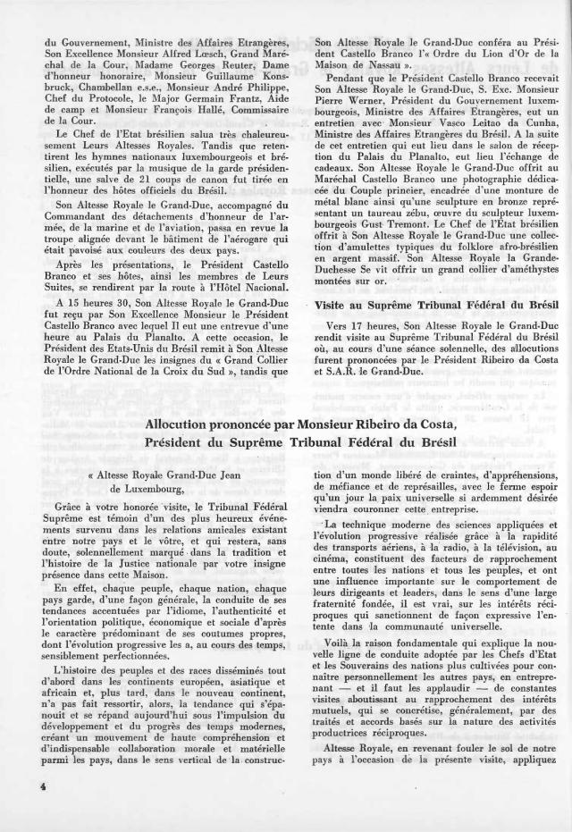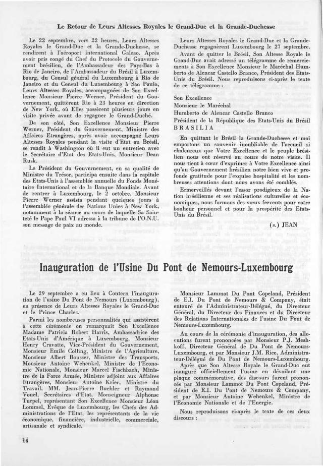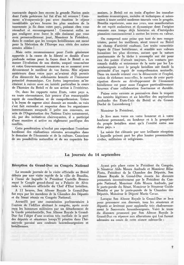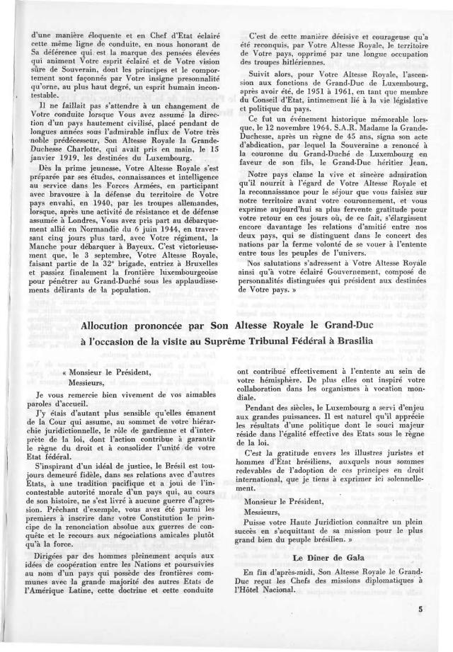 Source: "La visite officielle au Brésil de Leurs Altesses Royales le Grand-Duc et la Grande-Duchesse", in: Grand-Duché de Luxembourg, Ministère d'État, Service Information et Presse, Bulletin de Documentation. 21e Année, Nr. 12, 30 septembre 1965, pp. 3-13.