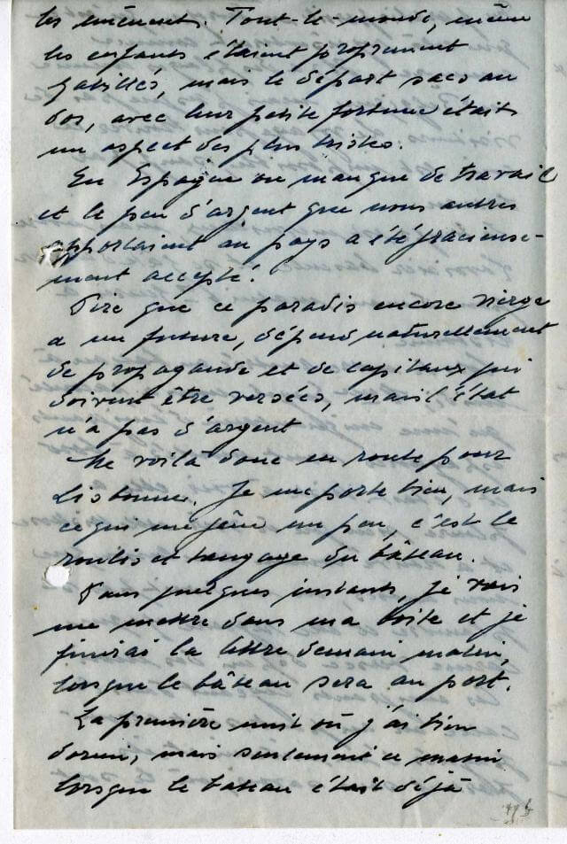 Dans quelques instants je vais me mettre dans ma boîte et je finirai la lettre demain matin, lorsque le bateau sera au port.