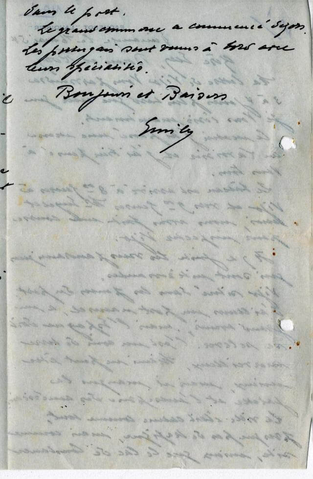 Lors de notre rentrée au bateau à midi, Mme Engel nous a raconté qu’une cinquantaine d’émigrants espagnoles sont montés à bord, et c’était triste à voir, elle a pleuré rien que de voir cette tristesse et a trouvé comme conclusion, que nous autres on ne devait pas se plaindre et elle regrette chaque larme versée depuis des mois.