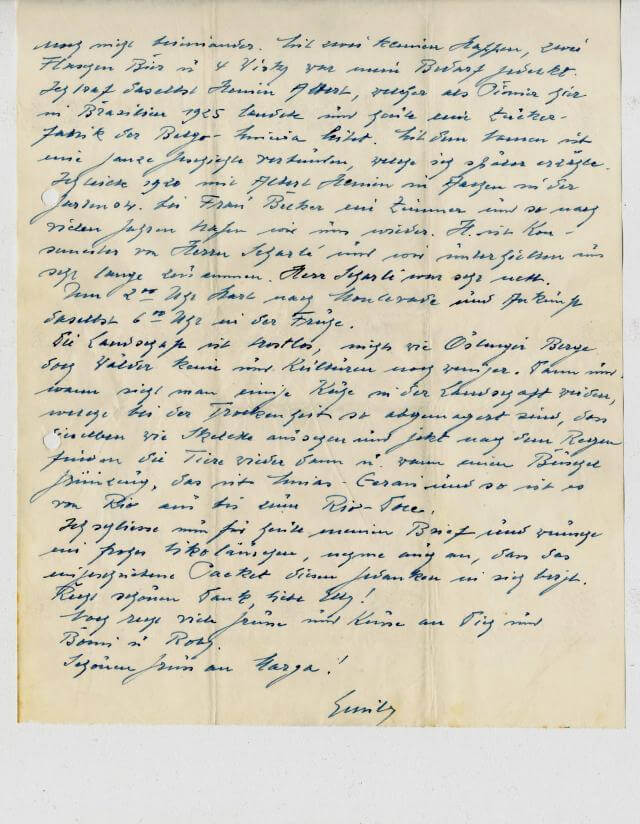noch nicht beieinander. Mit zwei kleinen Haffen(?), zwei Flaschen Bier und vier Whisky war mein Bedarf gedeckt. Ich traf da selbst Heinen Albert, welcher als Pionier hier in Brasilien 1925 landete und heute eine Zuckerfabrik der Belgo Mineira leitet. Mit dem Namen ist eine ganze Geschichte verbunden, welche ist später erzähle. Ich teilte 1920 mit Albert Heinen in Aachen in der Garm n 4 bei Frau Becker ein Zimmer und so nach vielen Jahren treffen wir uns wieder. H. ist Konsemester von Herrn Scharlé und wir unterhielten uns sehr lange zusammen. Herr Scharlé war sehr nett.