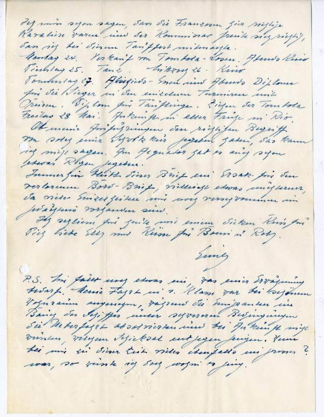 Immerhin bleibt dieser Brief ein Ersatz für den verlorenen Bord-Brief, vielleicht etwas nüchterner, da viele Einzelheiten nur noch verschwommen im Gedächtnis vorhanden sind.