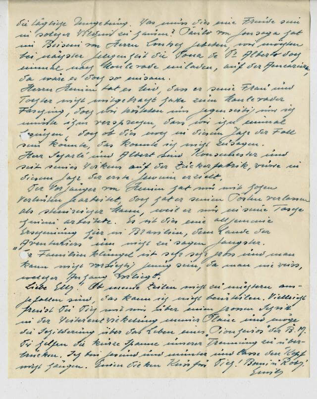 Liebe Elly! ob meine Zeilen nicht zu nüchtern ausgefallen sind, das kann ich nicht beurteilen. Vielleicht freust Du Dich mit mir über einen grossen Schritt in der Weiterentwicklung meiner Pläne und möge die Schilderung über das Leben eines “Pionheiros” [Pioneiro] der B.M. [Belgo Mineira] Dir helfen die kurze Spanne Meinung zu überbrücken. Ich bin gesund und munter und lasse den Kopf nicht hängen. Einen dicken Kuss für Dich! Bomi und Roby!