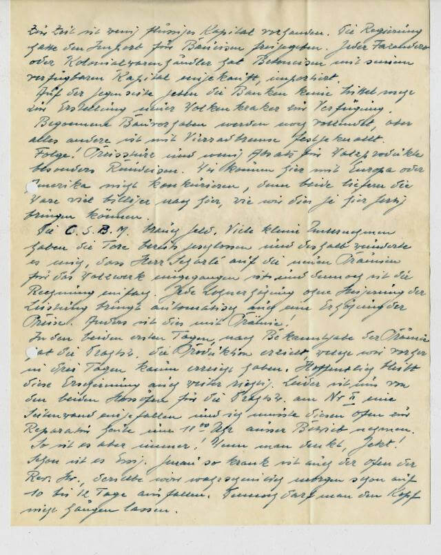 Streik in der Saar! Liebe Elly! Dieses Schreckgespenst habe ich schon immer gefürchtet. In einem Deiner letzten Briefe, da erwähntest Du, dass der junge Roby Hofmann bereits beobachtet hat, dass in Burbach die Arbeitsleistung eines Burbacher Beamten sehr gross ist. Der junge Roby weiss jedoch nicht, dass die meisten Bürobeamten sehr wenig Geld verdienen. Wie dies heute ist kann ich nicht sagen, doch was war dass eine leidige Angelegenheit, wenn ich in Hostenbach die Beamten entlehnte und dabei waren die hostenbacher Angestellten noch nicht einmal so schlecht “kotiert”. Mich wundert es nicht, wenn auch die Beamten der B.H. sich dieser Streikbewegung angeschlossen haben.
