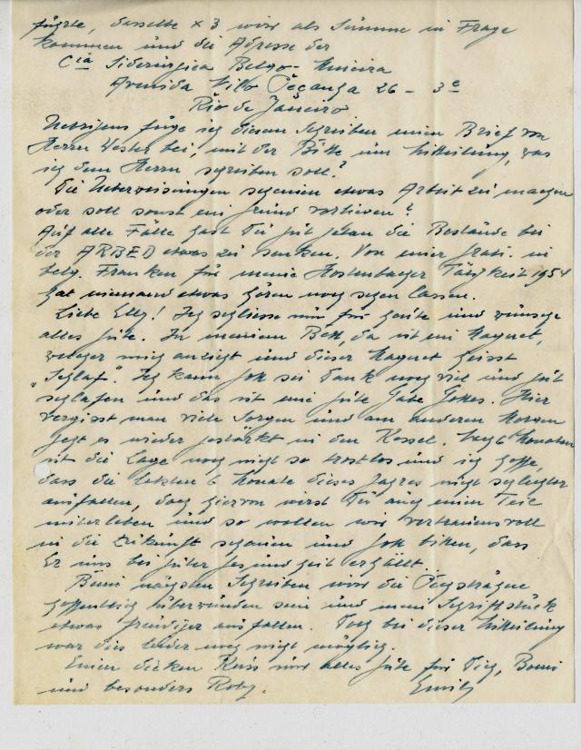 Liebe Elly! Ich schließe nun für heute und wünsche alles Gute. In meinem Bett, da ist ein Magnet, welcher mich anzieht und dieser Magnet heißt “Schlaf”. Ich kann Gott sei Dank noch viel und gut schlafen und das ist eine gute Gabe Gottes. Hier vergisst man viele Sorgen und am anderen Morgen geht es wieder gestärkt in den Kessel. Nach 6 Monaten ist die Lage noch nicht so trostlos und ich hoffe, dass die letzten sechs Monate dieses Jahres nicht schlechter ausfallen, doch hier von wirst Du auch einen Teil miterleben und so wollen wir vertrauensvoll in die Zukunft schauen und Gott bitten, dass Er uns bei guter Gesundheit erhällt.