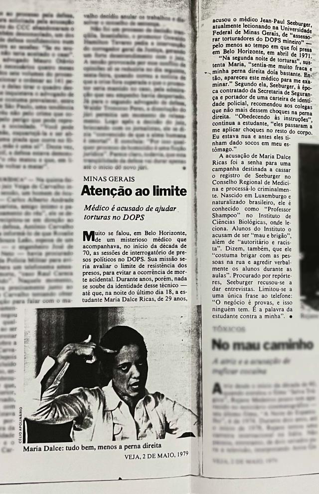 Read the article on 'Veja' news magazine in which Maria Dalce Ricas denounces Dr. Jean-Paul Seeburger.